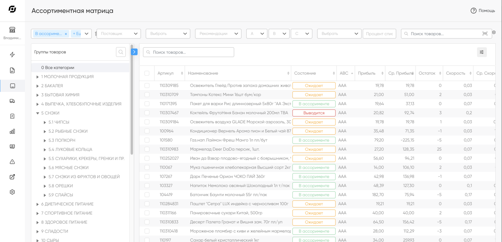 Еженедельно проводите «чистку хвоста»: смотрите АВС-ранги внутри групп, проверяйте просевшие позиции на связке «Кассовая реализация → Остатки → Торговые наценки», возвращайте цену в коридор или снимайте позицию. Такой ритм поддерживает матрицу в форме и не даёт складу «зарастать» рисками по срокам и деньгам.